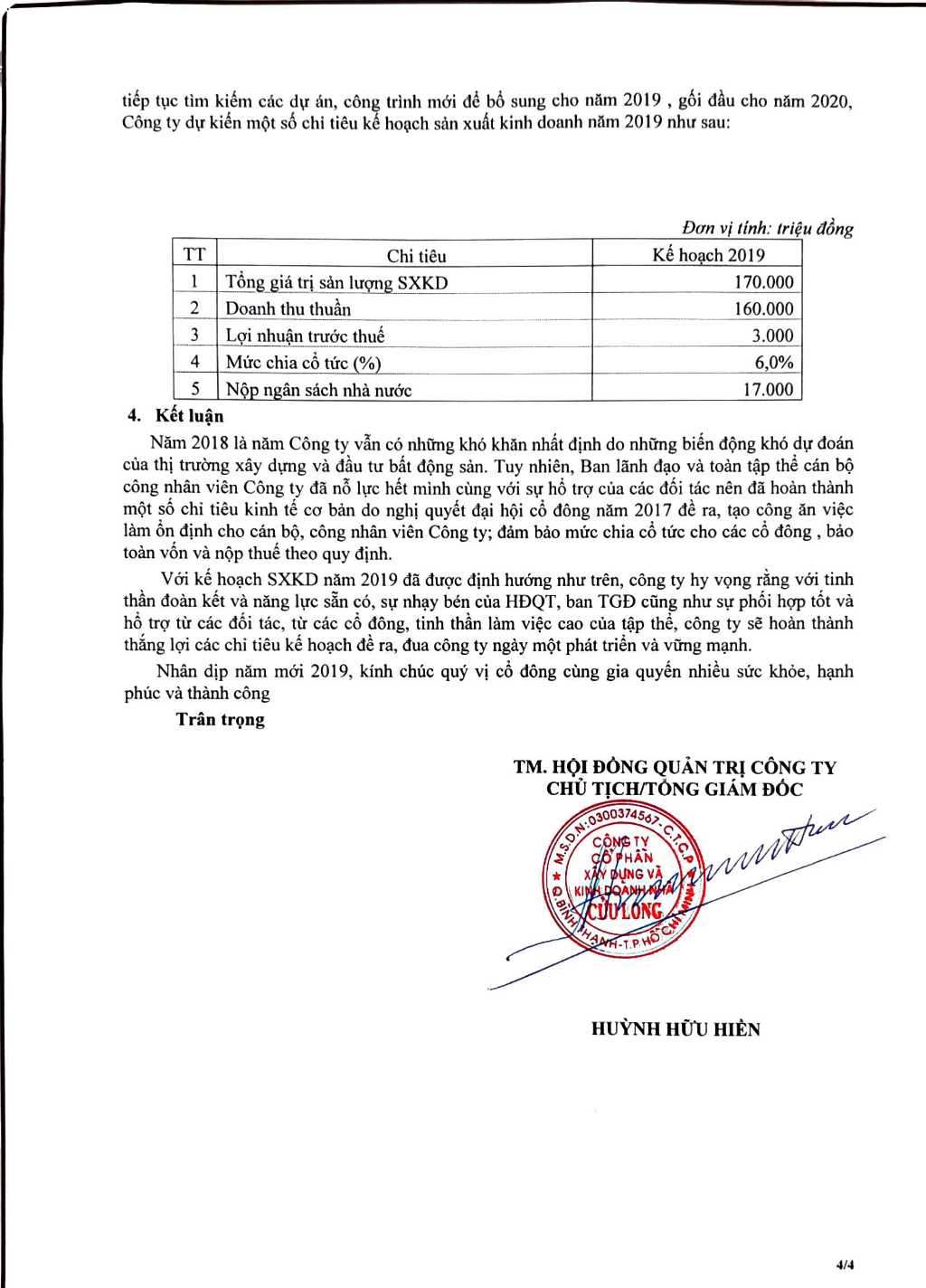 Báo cáo Kết quả Hoạt động sản xuất kinh doanh năm 2018 và Kế hoạch năm 2019