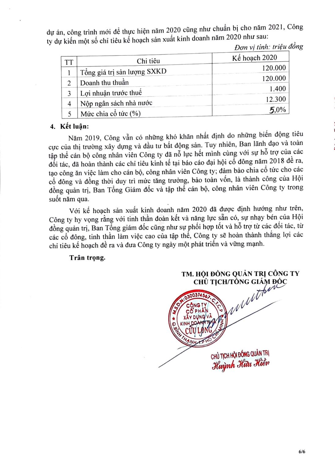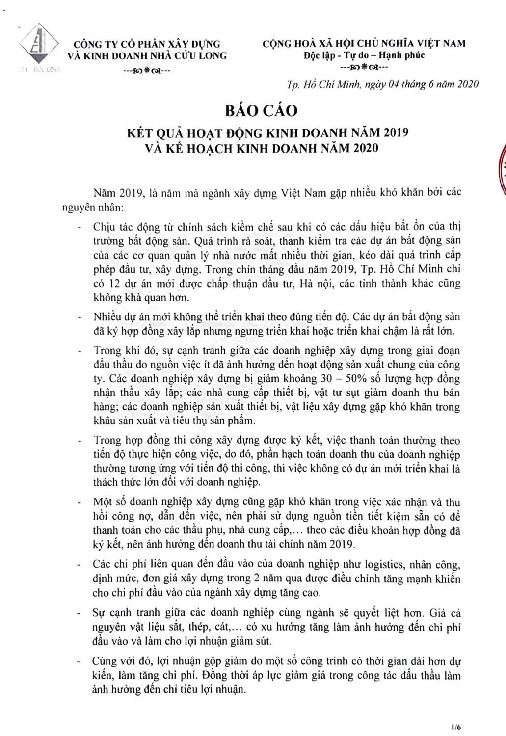 Báo cáo Kết quả Hoạt động Kinh doanh năm 2019 và Kế hoạch Kinh doanh năm 2020