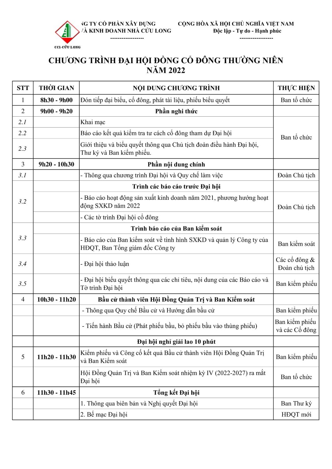 Chương trình Đại hội cổ đông thường niên năm 2022