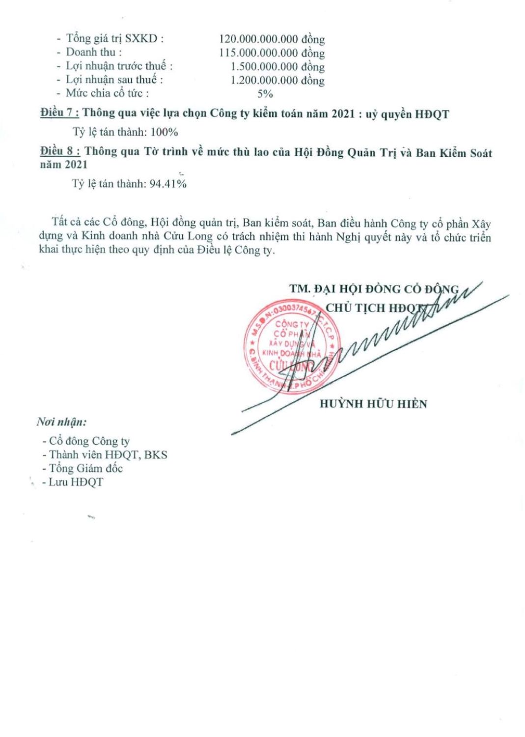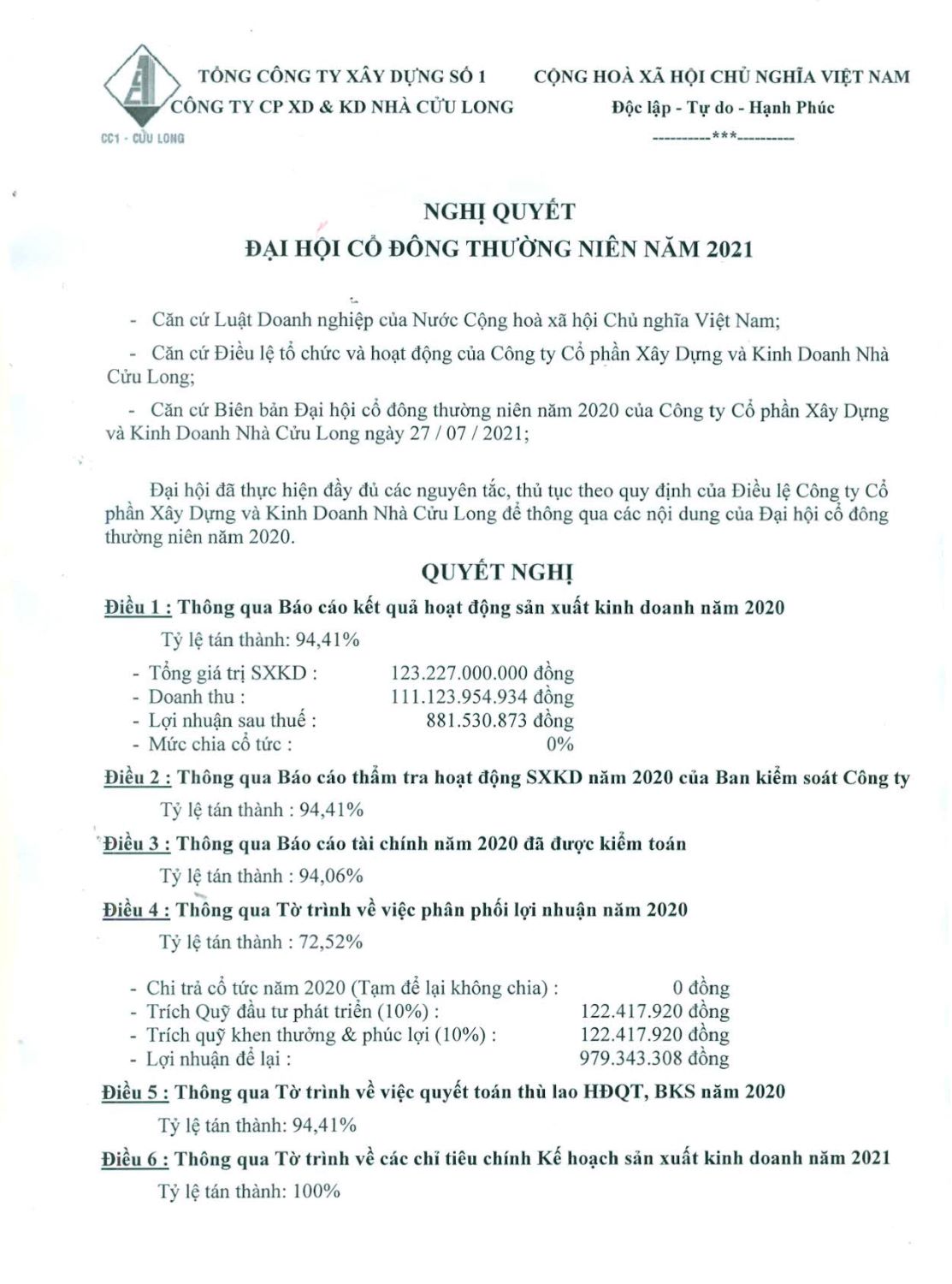 Nghị Quyết Đại Hội cổ đông thường niên năm 2021